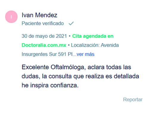 Opinión de los pacientes que acudieron a consulta con Oftalmóloga