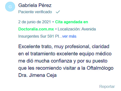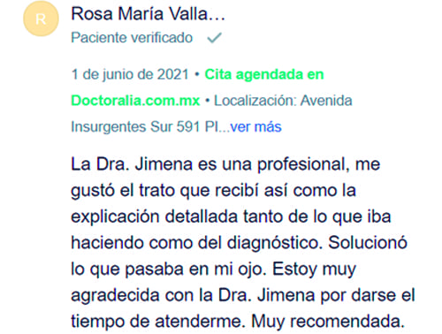 Opinión de los pacientes que acudieron a consulta con Oftalmóloga
